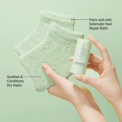 Elevate your at-home spa ritual with ultra-hydrating gel heel socks designed to visibly soften and restore dry, cracked heels in just 30 minutes. Plush and cozy on the outside, each pair is lined with moisture-rich gel to deeply condition and lock in hydration. Washable and reusable, these luxe treatment socks pair perfectly with our Solemate Heel Repair Balm for smoother, healthier-looking heels.