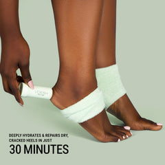 Slip the socks on clean, dry heels for at least 30 minutes or overnight. Remove and massage any remaining product into your skin.